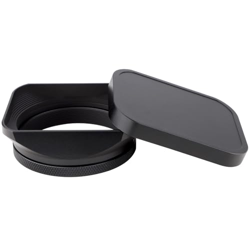 Haoge Fyrkantig metalllinsskydd för Fuji Fujifilm X100VI FinePix X100V X100F X100 X100S X100T X70 kamera svart LH-X54B + Cap-X54B linsskärm med lock och 49 mm adapterringkit