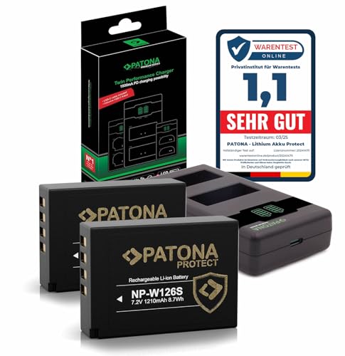 PATONA V1 Protect NP-W126s batteri 2X (1140 mAh) inklusive NTC-sensor och V1-hölje – med PD Performance USB-laddare 161957 (1000 mA) - Fuji X100VI X-M5 X-T20 X-T30 X-T30 II X-T50 etc.