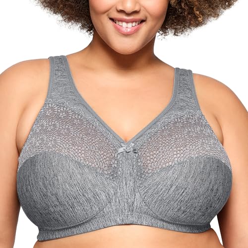 Glamorise MagicLift Fuktkontroll BH i plusstorlek för kvinnor utan bygel #1064, Grå ljung, 110E