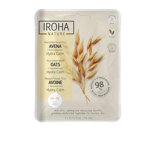 IROHA NATURE – lugnande havregryn fuktmask | Djupeffektiv fuktkräm | minskar rodnad | 98% naturliga ingredienser | Vegan och 100% biologiskt nedbrytbar