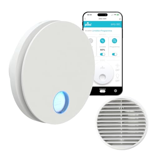 plikc - WIFI väggfläkt med axiell frånluftsserie Ario W med fuktsensor och timer – 100% tillverkad i Italien + vägggaller (guld Ø 98, vit)