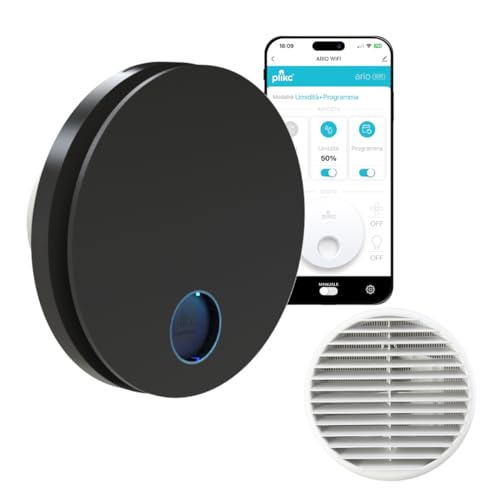 plikc - WIFI väggfläkt med axiell frånluftsserie Ario W med fuktsensor och timer – 100% tillverkad i Italien + vägggaller (guld Ø 98, svart)