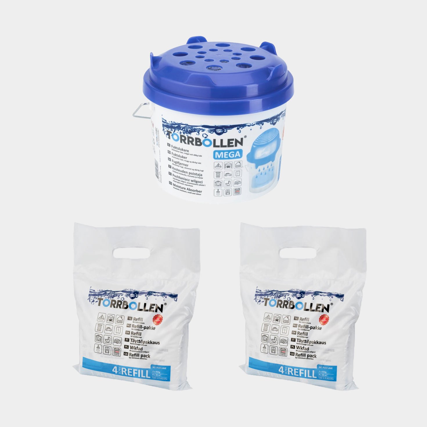 Torrbollen Fuktslukare MEGA, verkningsyta upp till 40 m², påfyllningsbar + 12 torkpatroner (12 x 450 gram)