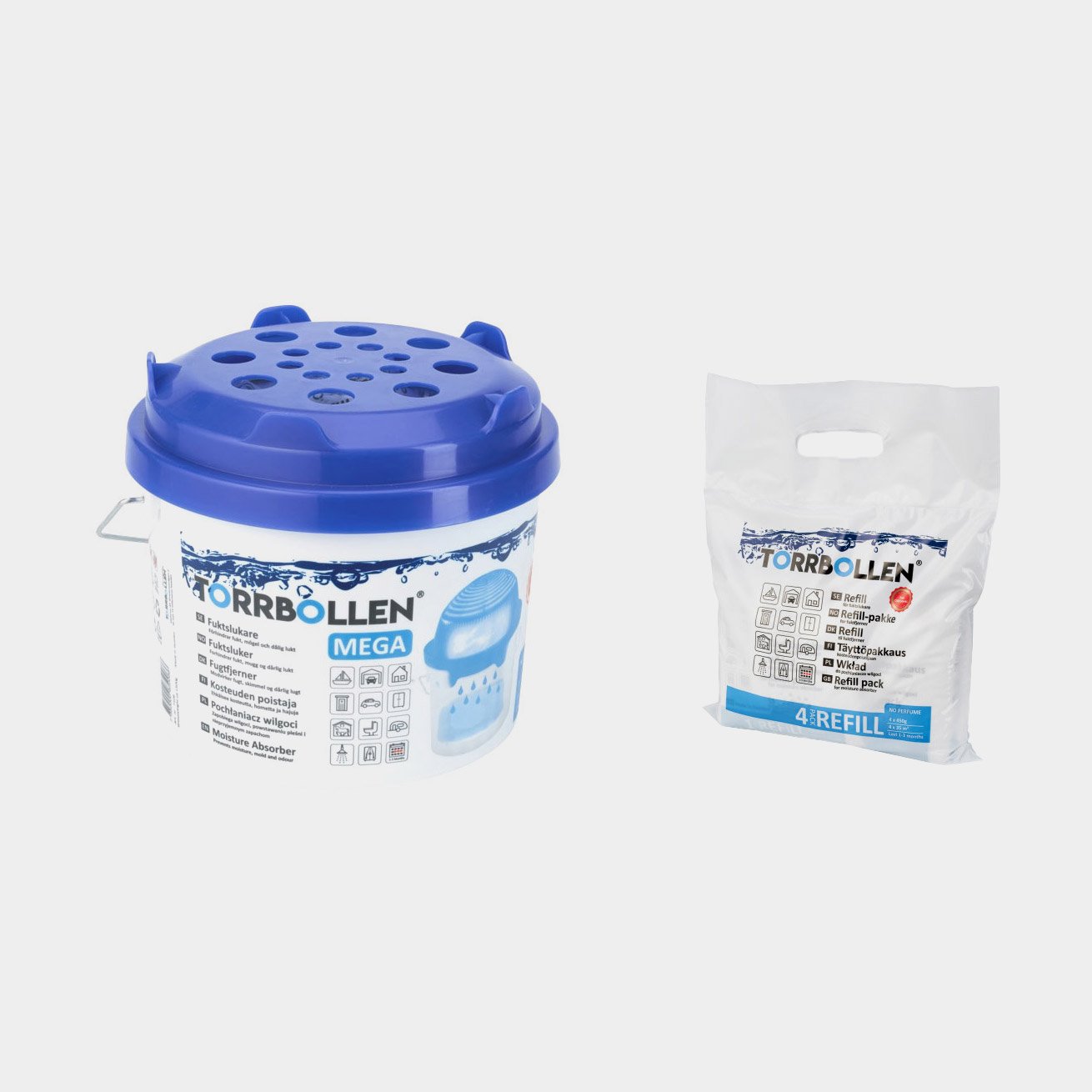 Torrbollen Fuktslukare MEGA, verkningsyta upp till 40 m², påfyllningsbar + 4 torkpatroner (4 x 450 gram)