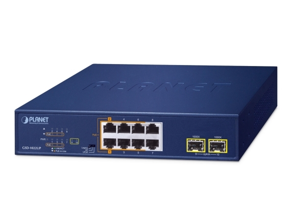 Planet 8-Port 10/100/1000T 802.3At, Hanterad, L2, Gigabit Ethernet (10/100/1000), Full Duplex