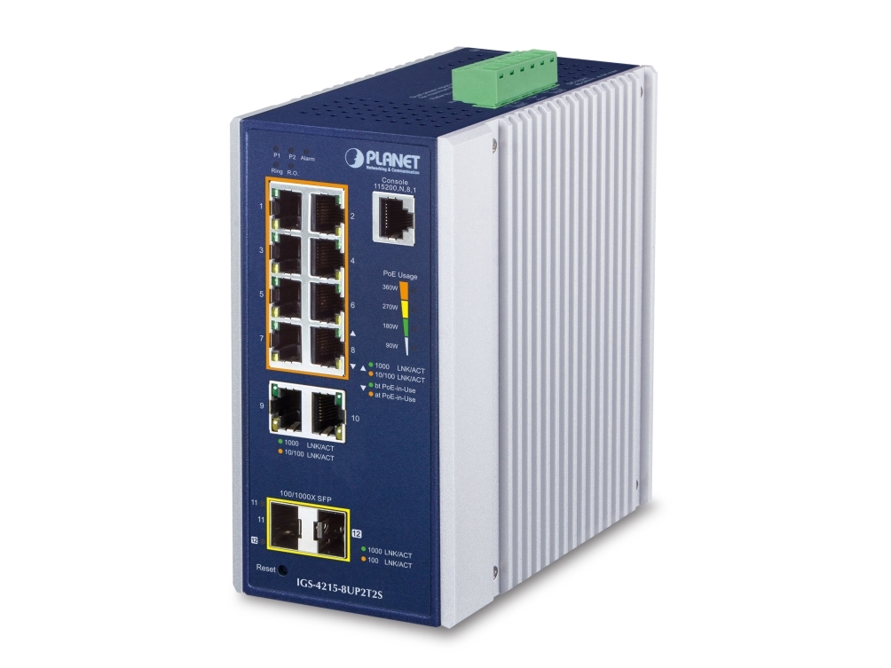 Planet Igs-4215-8Up2t2s, Hanterad, L2/L4, Gigabit Ethernet (10/100/1000), Full Duplex, Strömförsörjning Via Ethernet (Poe) Stöd, Monteringsbar På Väggen