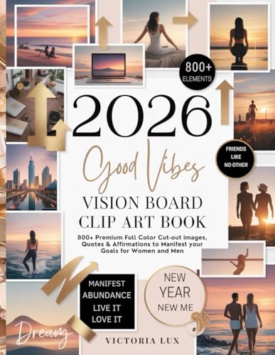 Good Vibes Vision Board Clip Art Book: 800+ Premium Full Color Cut-Out Images, Quotes, Words & Affirmations to Manifest Your Goals for Women and Men