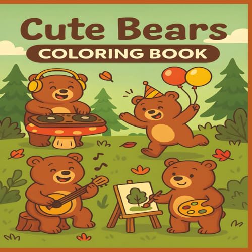 Cute Bears Coloring Book: 50 Adorable and Funny Bear Scenes for Kids to Color, Laugh, and Relax