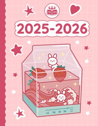 2025 2026 Planner Kawaii Bunny Strawberry Milk Drink Cute: Weekly and Monthly with Calendar (12 Month, Goals, Water & Sleep Tracker...) Birthday Funny ... for Japanese Anime Lovers in School & Work