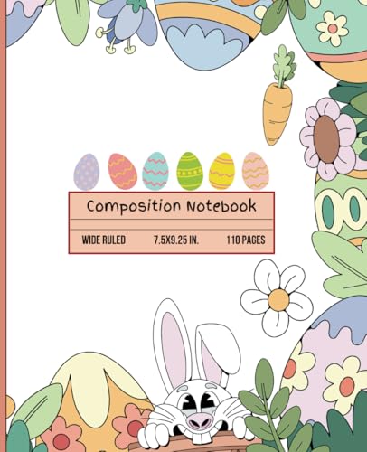 Composition Notebook Wide Ruled: Happy Easter Funny Bunny Journal | Crafts and Writing Notebook | For Kids, Teens or Adults | Easter Basket Gift, Teacher Gift, School Notebook