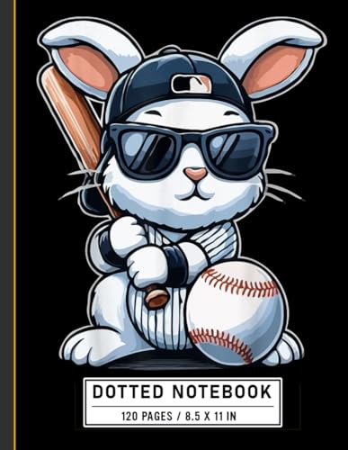 Dotted Notebook: Funny Bunny Playing Baseball in Easter Theme, Holiday Journal for Kids, Sports Fans, and Spring Fun