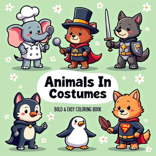 Animals in Costumes: Coloring Book for Adults and Kids with Big, Bold and Easy Designs for Relaxation Showcasing Funny Animals, Funny Dog, Cute Bunny, Cute Animals and More