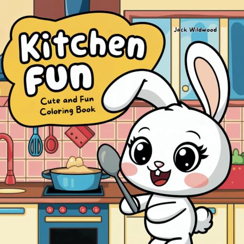 Kitchen Fun: Cute Coloring Book for Kids, Teens and Adults Featuring a Funny Bunny in the Kitchen