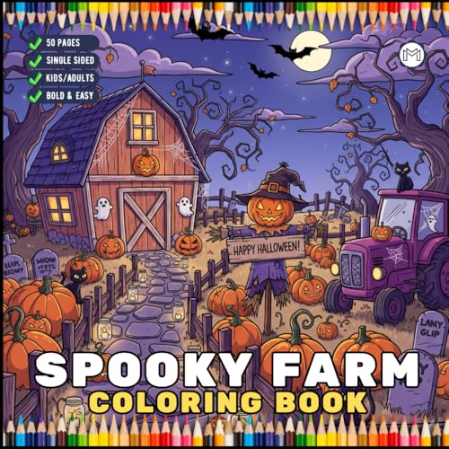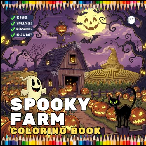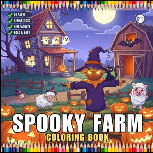 Cute Spooky Farm Halloween Coloring Book for Adults Kids Boys Girls Young Teens Funny Halloween Farm Animals Ghosts Chickens Witches Scarecrows ... Halloween Coloring Pages Gift for Farmers