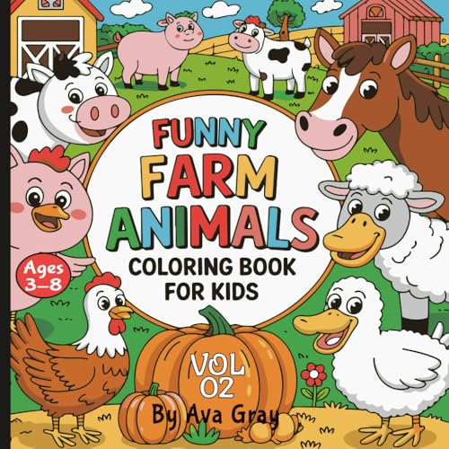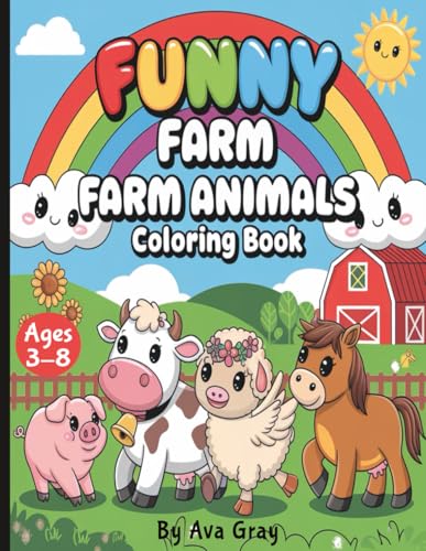 Funny Farm – Cute Farm Animal Coloring Book for Kids: Fun and easy pages with pigs, cows, chickens, bunnies, and more - perfect for kids.