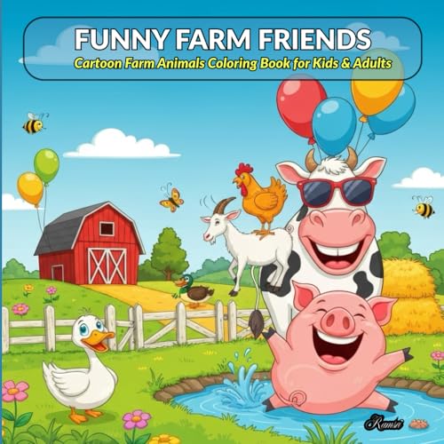 FUNNY FARM FRIENDS: Cartoon Farm Animals Coloring Book for Kids & Adults
