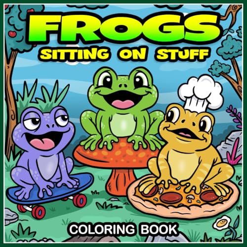 Frogs Sitting on Stuff: Funny Frog Coloring Book for Kids Ages 4–8, Silly Frogs Sitting on Pizzas, Rockets, Cupcakes, and More, Hilarious Animal Activity Book for Boys and Girls