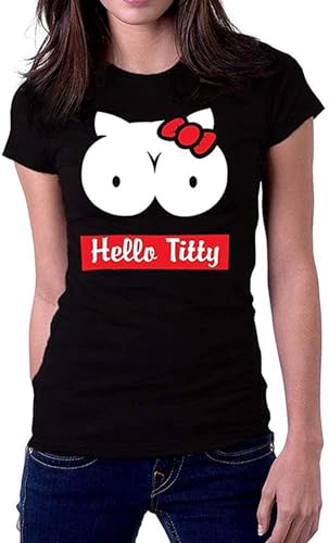 Funny Hello Titty Tits Boobs Parody Kitty Logo Wo Unisex 100 % bomull kortärmad t-shirts svart, svart, L