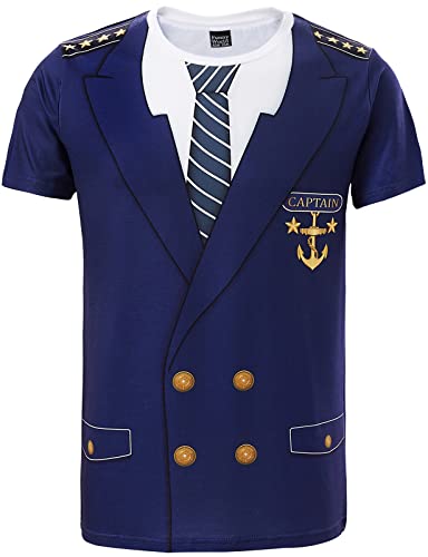 Funny World Men's Captain Costume T-Shirts (L, Blue)