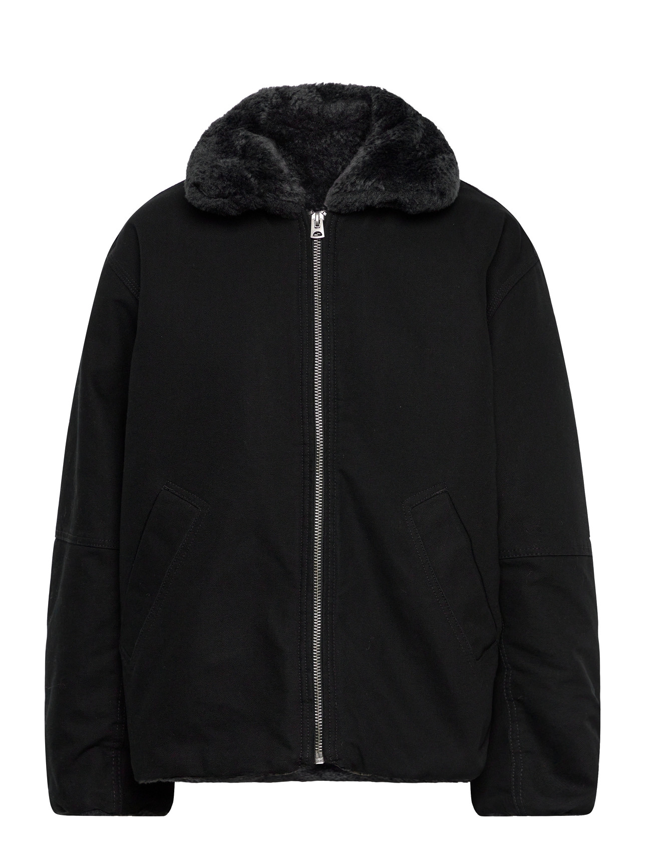 Weekday Fur-Lined Canvas Jacket - Black - XS
