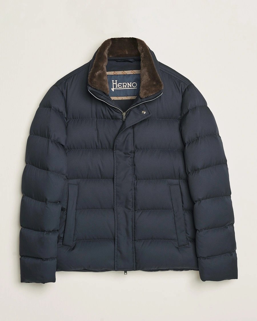 Huda Hooded Faux Fur Jacket Navy: S/M