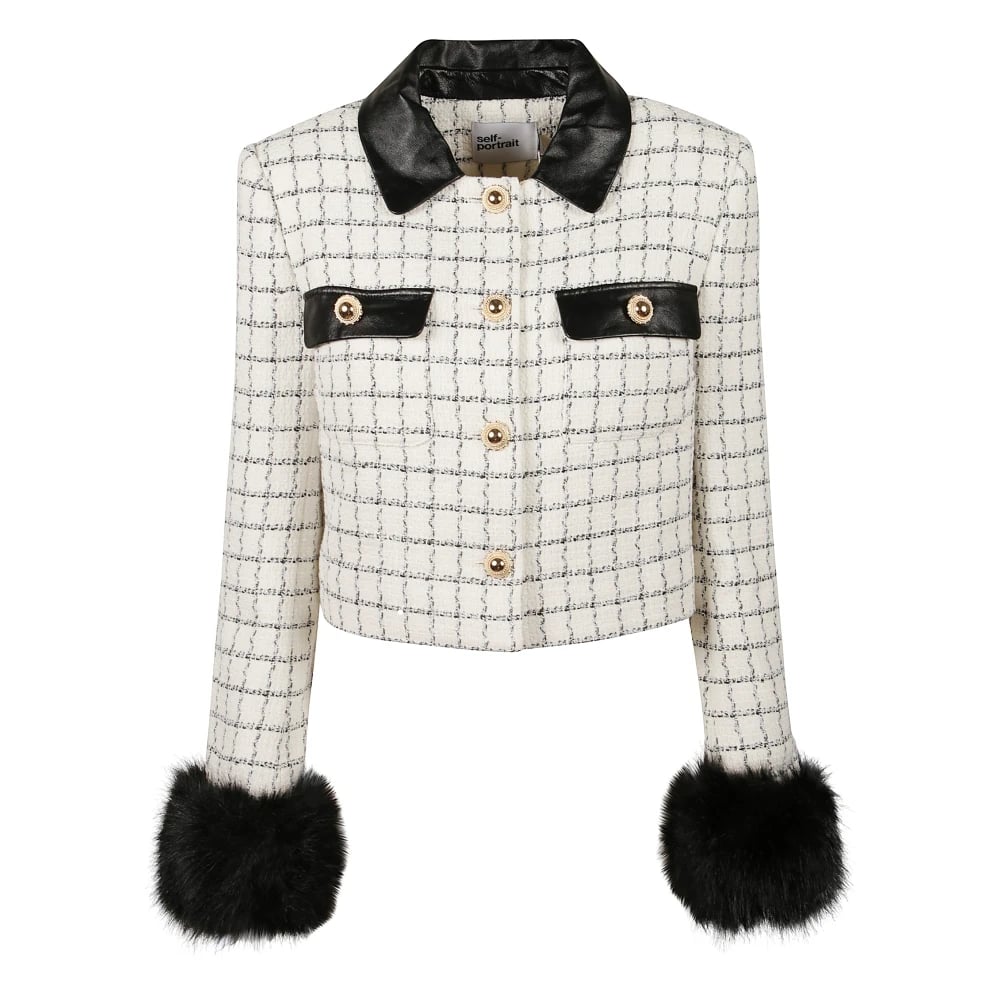 Self Portrait, Jackor , Dam, M, Läder, Check Boucle Fur Cuff Jacket