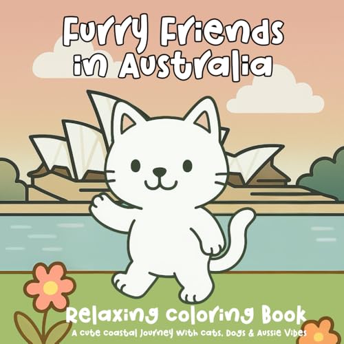 Furry Friends in Australia: A Coloring Book for Adults and Kids Featuring Cute Cats and friends on Coastal Adventures, Road Trips, and Relaxing Aussie Beach Days