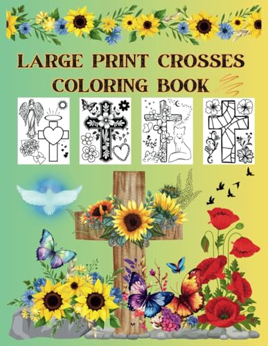 LARGE PRINT CROSSES COLORING BOOK: FOR ADULTS WITH BEAUTIFUL FLOWERS, BUTTERFLIES, FURRY FRIENDS AND MORE
