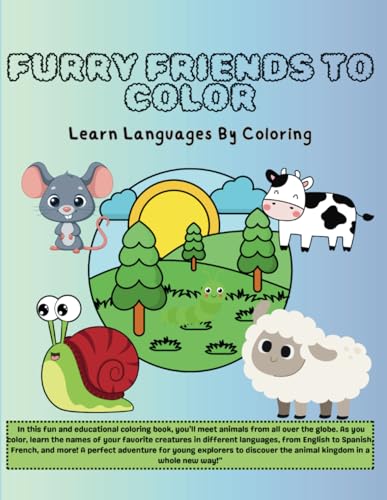 Furry Friends To Color: An Animal Coloring Adventure for Kids – Learn Animal Names in 4 Languages: 30 Different Animals: Coloring Book For Kids Ages 6-10: excellent anxiety and stress relief!