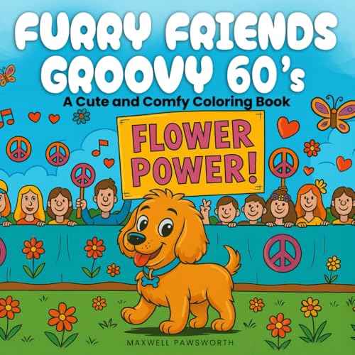 Furry Friends Groovy 60s: A Cute and Comfy 50-Page Retro Hippie Coloring Book for Adults and Teens to Spark Joy, Relax Fast, and Embrace Flower Power Vibes