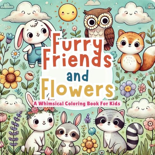 Furry Friends & Flowers: A Whimsical Coloring Book for Kids: A Fun & Easy Coloring Book with Adorable Animals and Lovely Flowers for Kids Ages 4-8