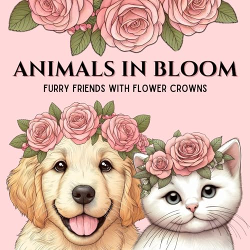 Animals in Bloom: Furry Friends in Flower Crowns Coloring Book: Pets, Farm Animals, Wildlife, and More!