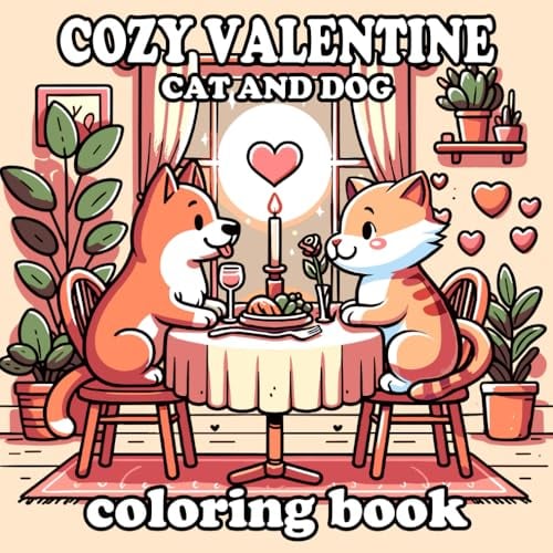 Cat and Dog Cozy Valentine Coloring Book: Cute Furry Friends, Cozy Moments, and Valentine’s Day Cheer