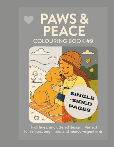 Paws & Peace Colouring book #9: 25 one-sided designs to explore balance and connection with our furry friends strength | Thick lines, uncluttered ... and neurodivergent minds | 8.5"x11" - 52 Page