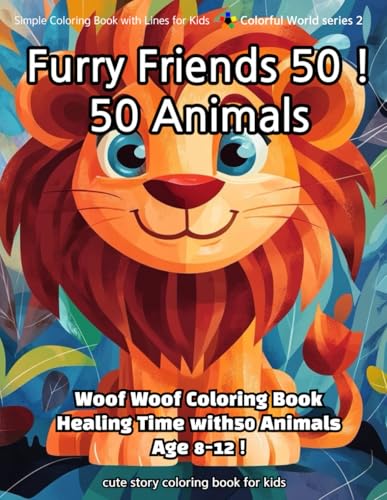 Furry Friends 50 ! 50 Animals: Woof Woof Coloring Book Healing Time with50 Animals Age 8-12 !