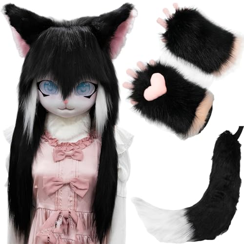 Fursuit Animal Head Set, KIG Bärbar Huva Med Svans Och Handskar, Anime Stil Japansk Fursuit Huva(Color:B)