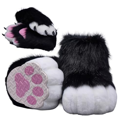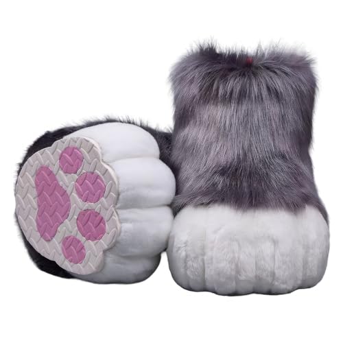 Furry Faux Animal Paw Tofflor, Cosplay Djurkatt Varg Hund Rävpäls Kostym Skor, Fursuit Pälstillbehör Tofflor KIG (Color : G, Size : 42 EU)