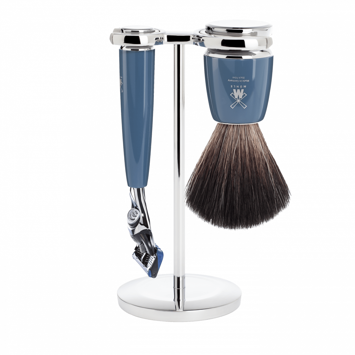 Mühle RYTMO Rakset (Färg: Petrol/Blå, Rakborste: Black Fibre®, Ställ: Utan skål, Rakhyvel: Gillette Fusion)