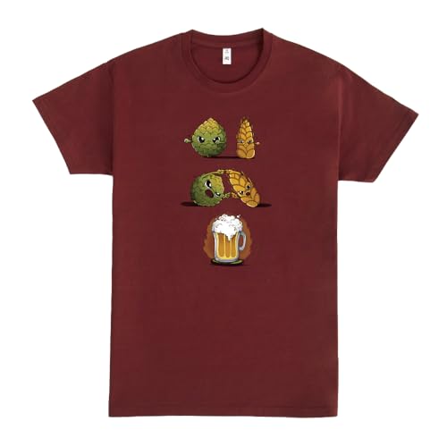 Pampling Kortärmad T-shirt, 100% Bomull, Unisexkläder för Herr och Dam, Screentryckt med Rund Hals och Rak Passform, Färg Röd (Beer Fusion, XXL)