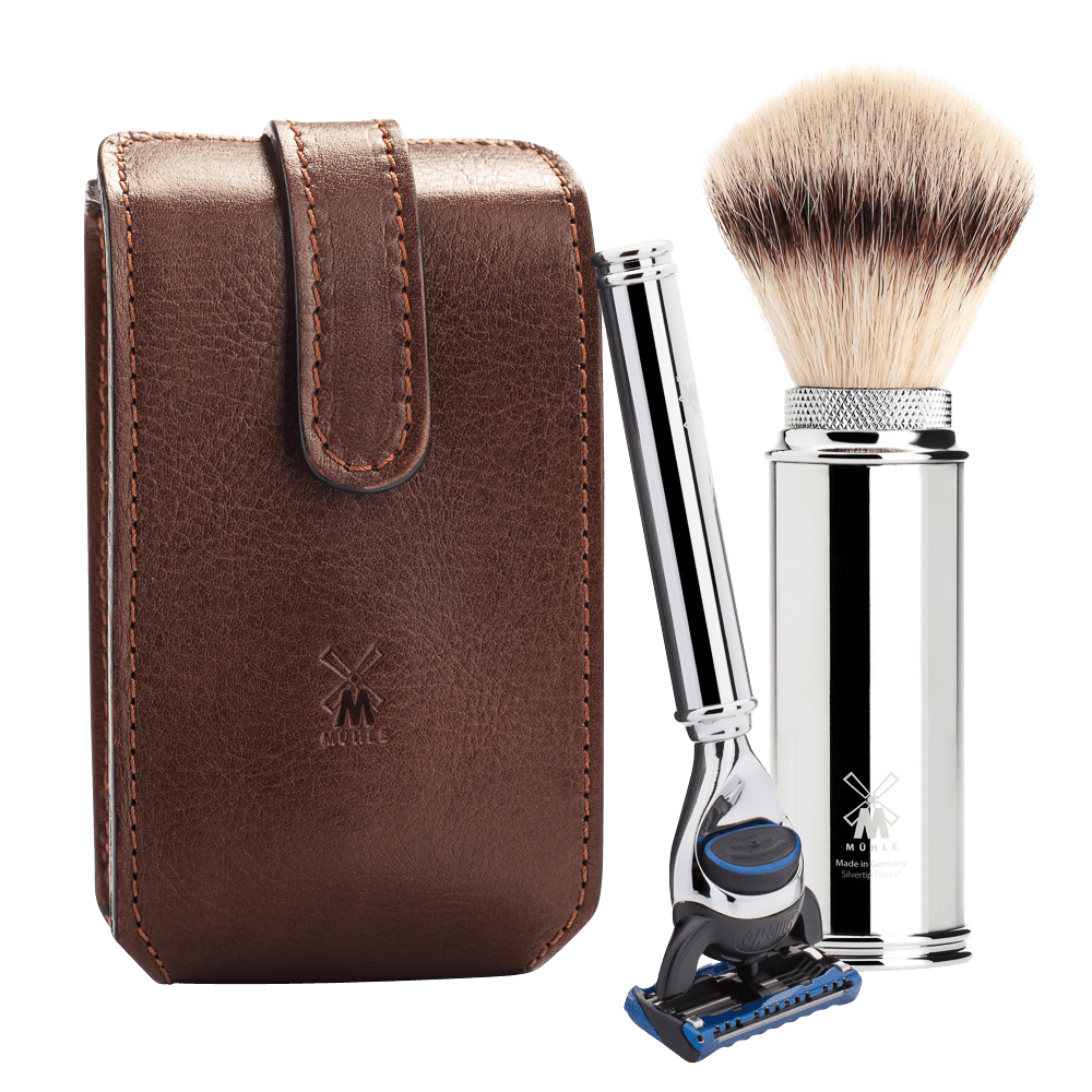Mühle Travel Rakhyvel och Rakborste i läderfodral (Färg: Brun, Rakhyvel: Gillette Fusion (R20F))