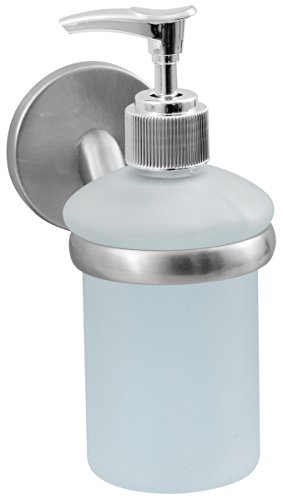 Fackelmann FUSION Tvåldispenser, behållare för flytande tvål, tvålbehållare med förnicklat väggfäste (färg: silver/mjölkig), mängd: 1 styck
