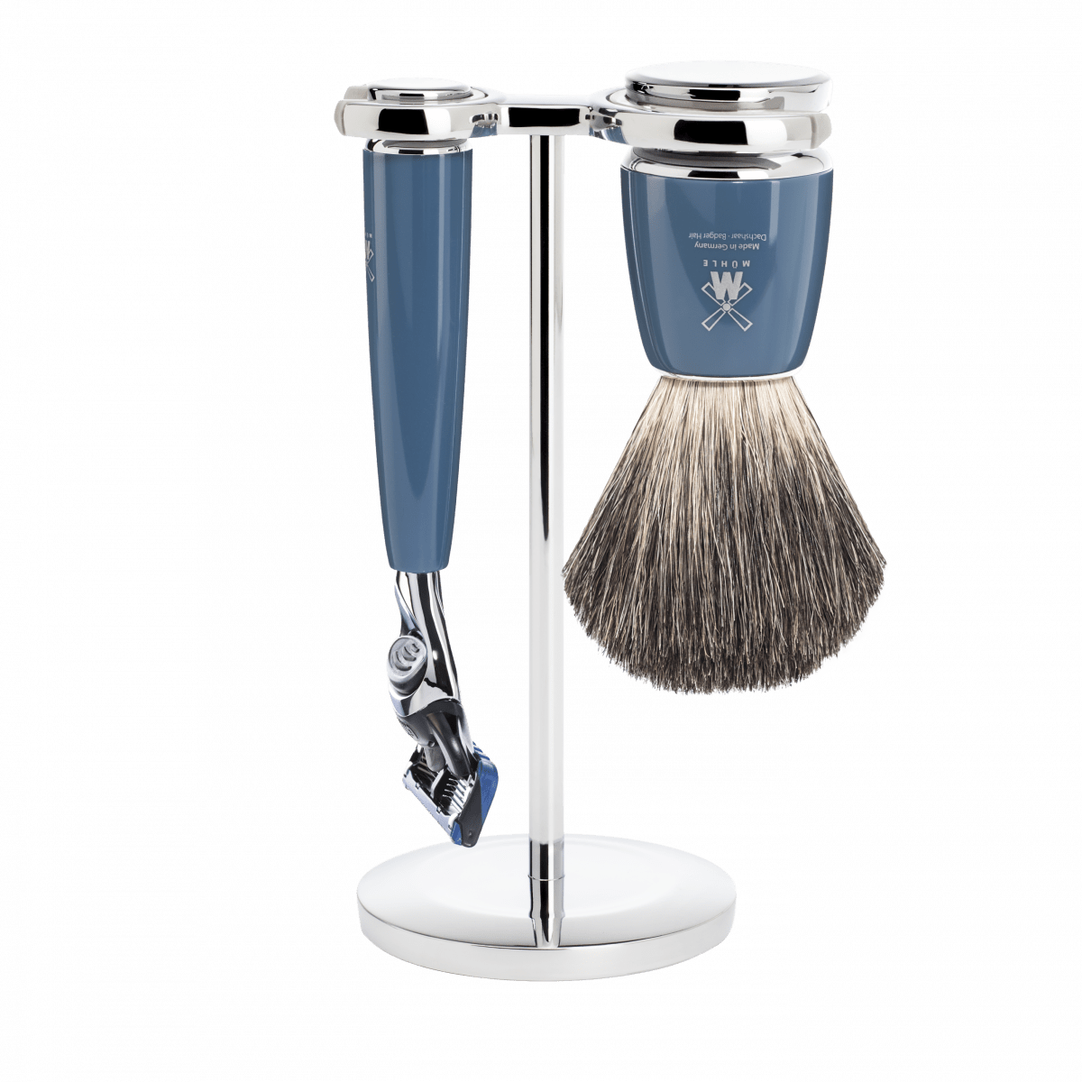 Mühle RYTMO Rakset (Färg: Petrol/Blå, Rakborste: Pure Badger, Ställ: Utan skål, Rakhyvel: Gillette Fusion)