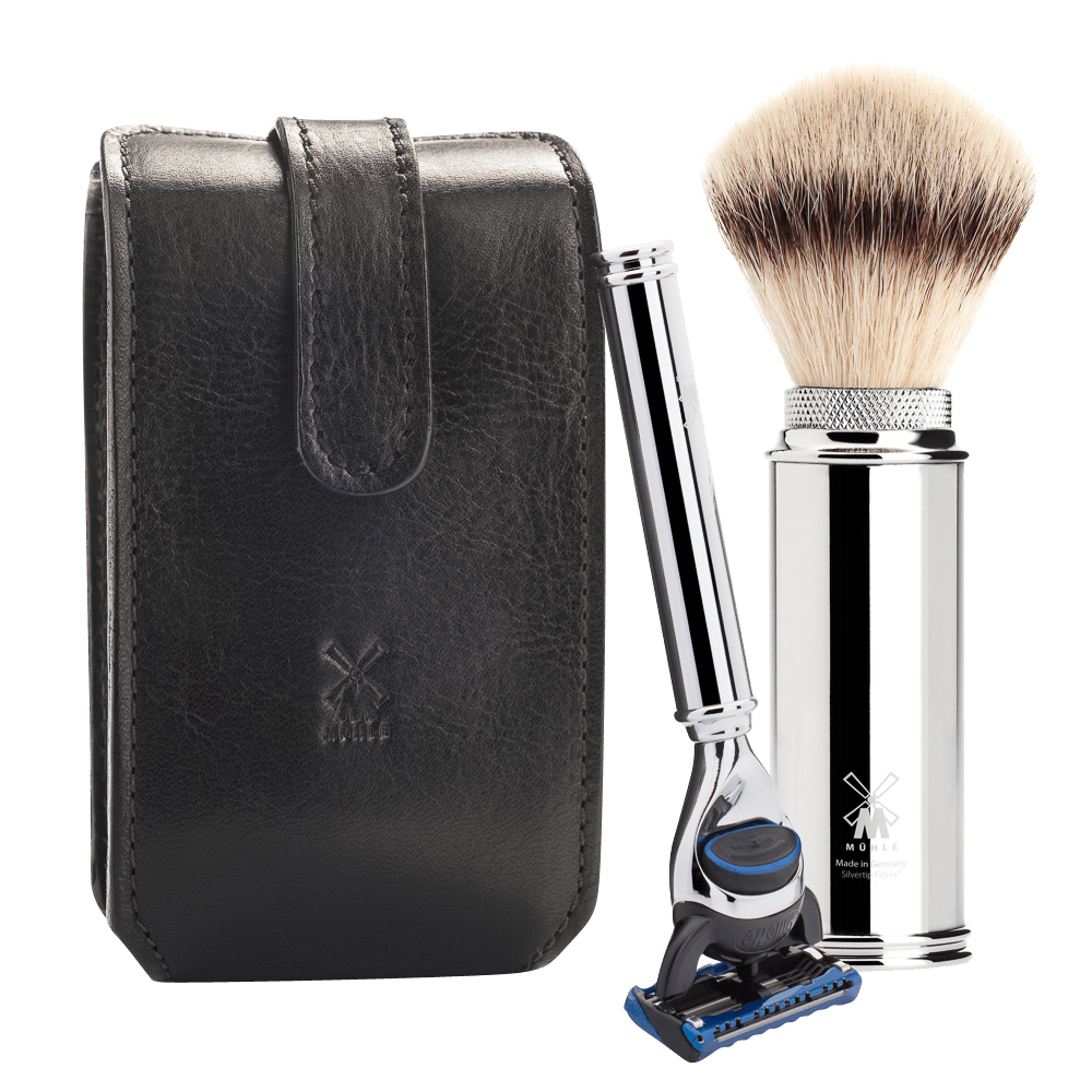 Mühle Travel Rakhyvel och Rakborste i läderfodral (Färg: Svart, Rakhyvel: Gillette Fusion (R20F))
