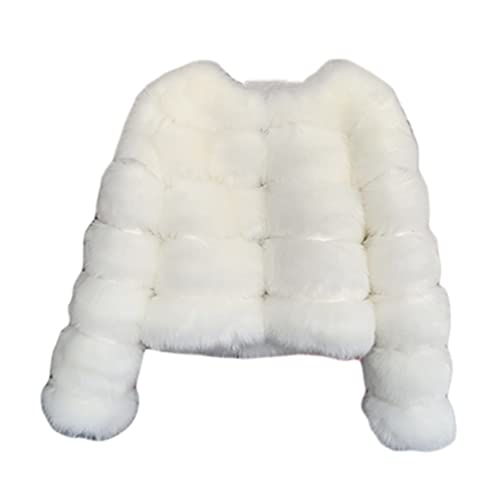 PengGengA Dam fuskpäls kappa enkel långärmad jacka med rund hals lurviga ytterkläder med krok fästen, Vitt, 4XL