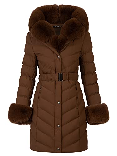 WenVen varm tjock lång kappa för kvinnor varm quiltad jacka med fuskpäls avtagbar huva, Svart, 3XL