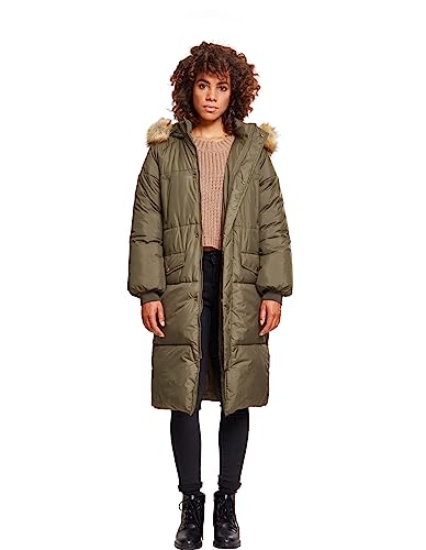 Urban Classics Dam oversize fuskpäls pufferkappa jacka, Flerfärgad (mörkoliv/beige 01481), S