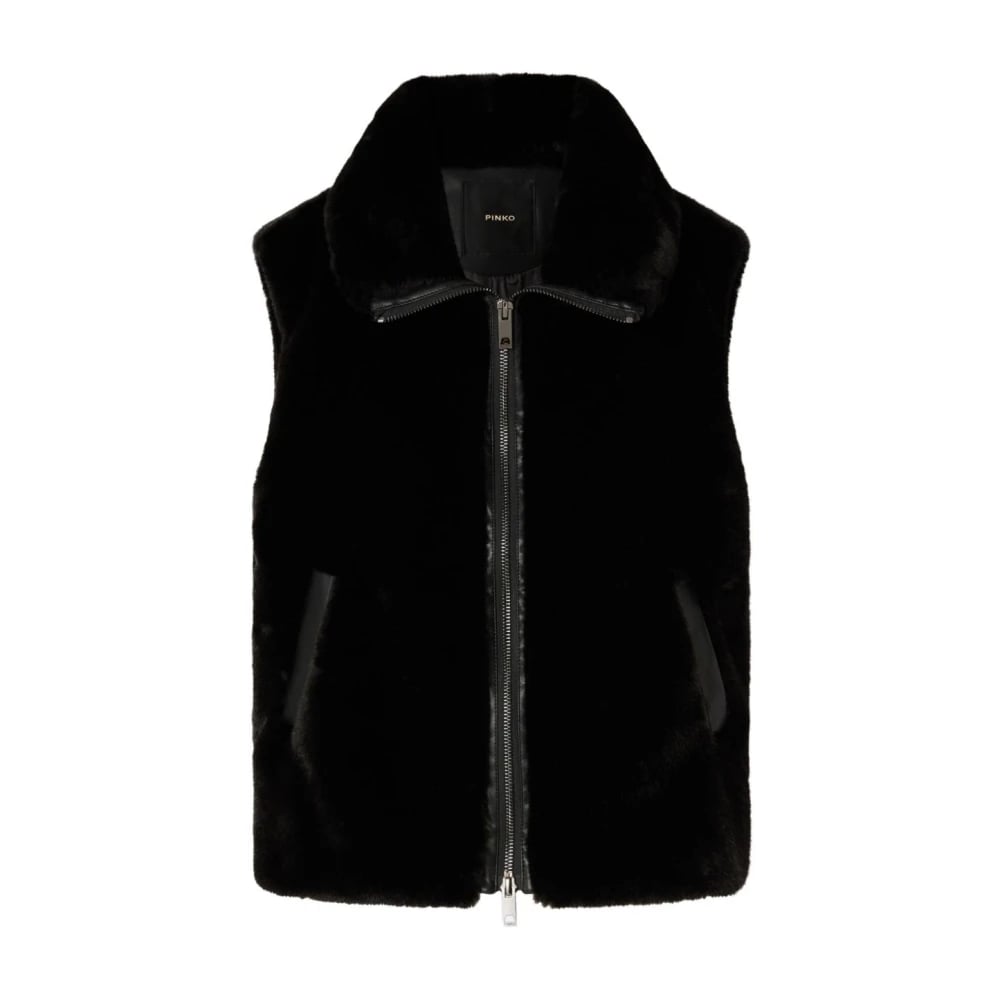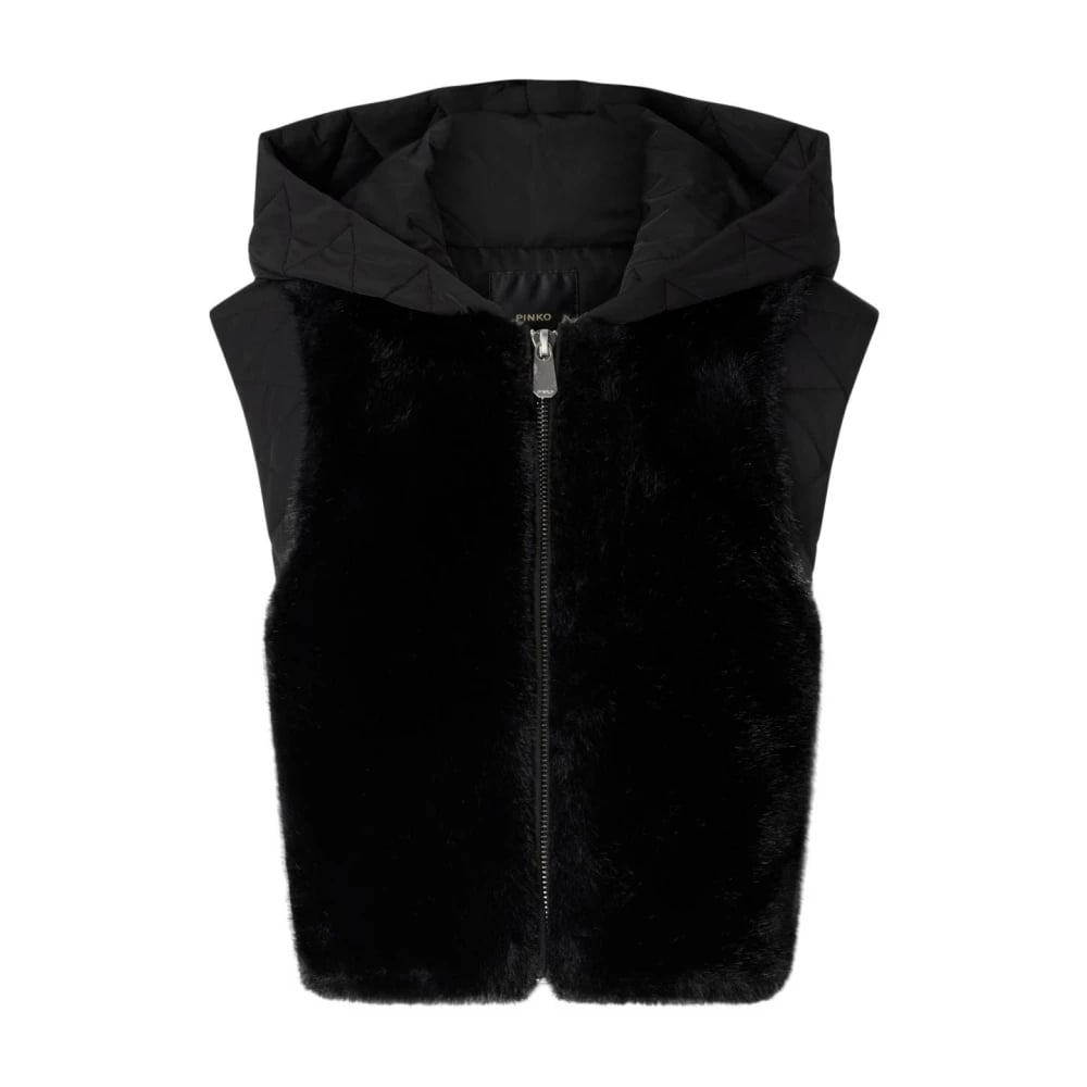Pinko, Jackor , Dam, S, Fuskpäls, Svart Fuskpäls Ärmlös Jacka