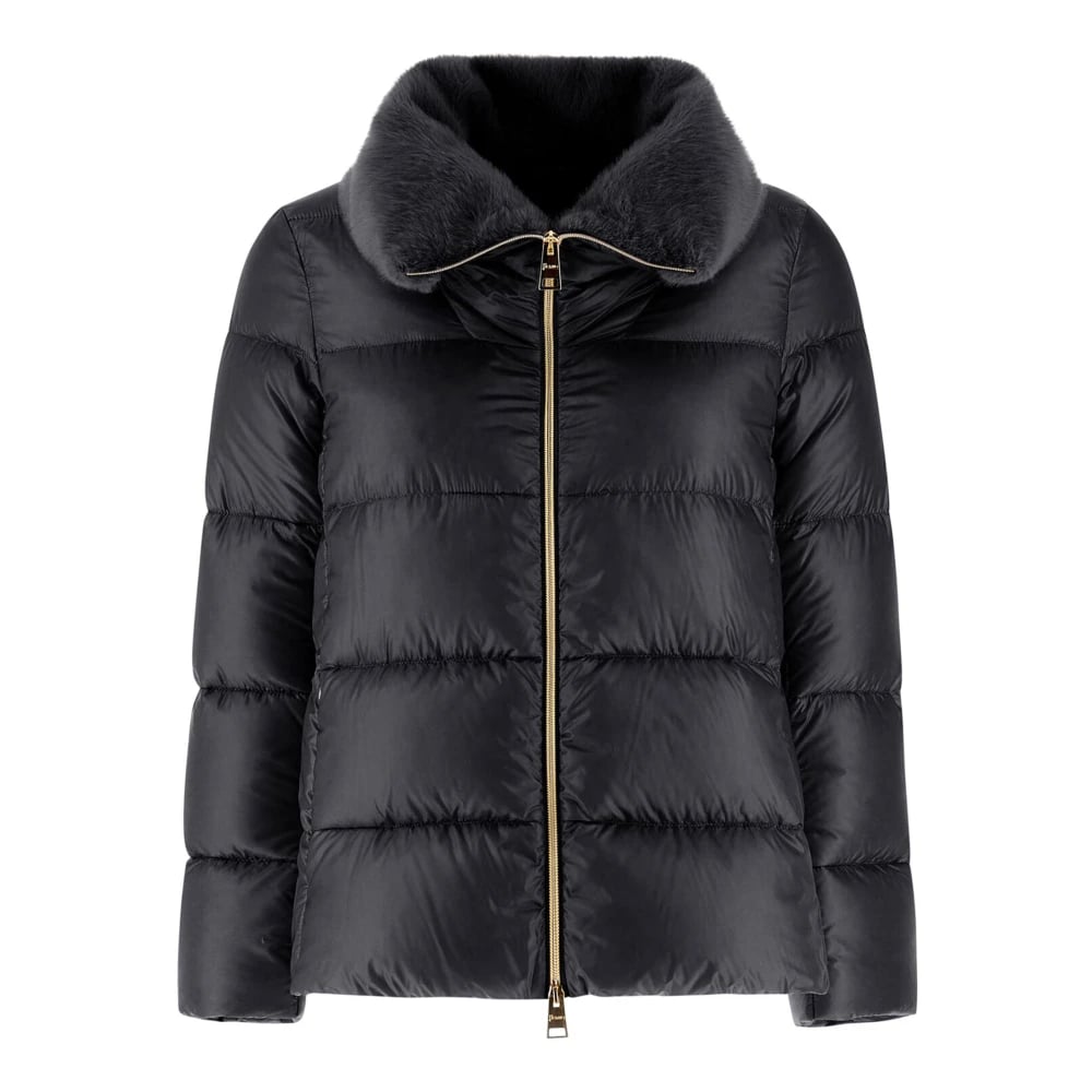 Herno, Jackor , Dam, L, Nylon, Svart Nylon Quiltad Fuskpäls Jacka