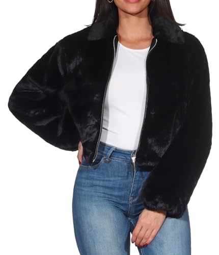 TDEOK Vinterkappa damer elegant varm vinterjacka svart kort pälsjacka långärmad fuskpälsjacka pälsjacka fuskpäls jacka pälsrock vinter övergångsjacka päls jackor, Aaa-svart, S