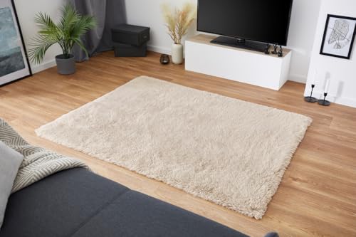 -LUXOR- levande fuskpäls coste fluffig matta sovrum – perfekt för användning som sängmatta sovrum – mysig pälsmatta lammskinnsimitation 160 x 230 cm beige